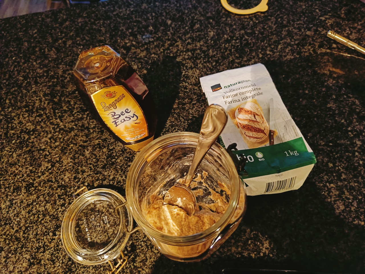 - 1 petite cuillère à café de miel (ou du sucre, ou un morceau de fruit)