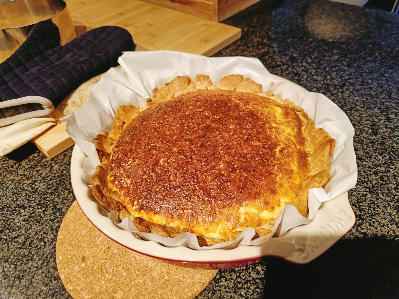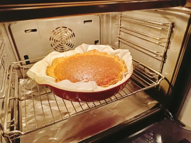 Etaler la pâte, piquer à la fourchette, précuire 10 min à 150 °C.