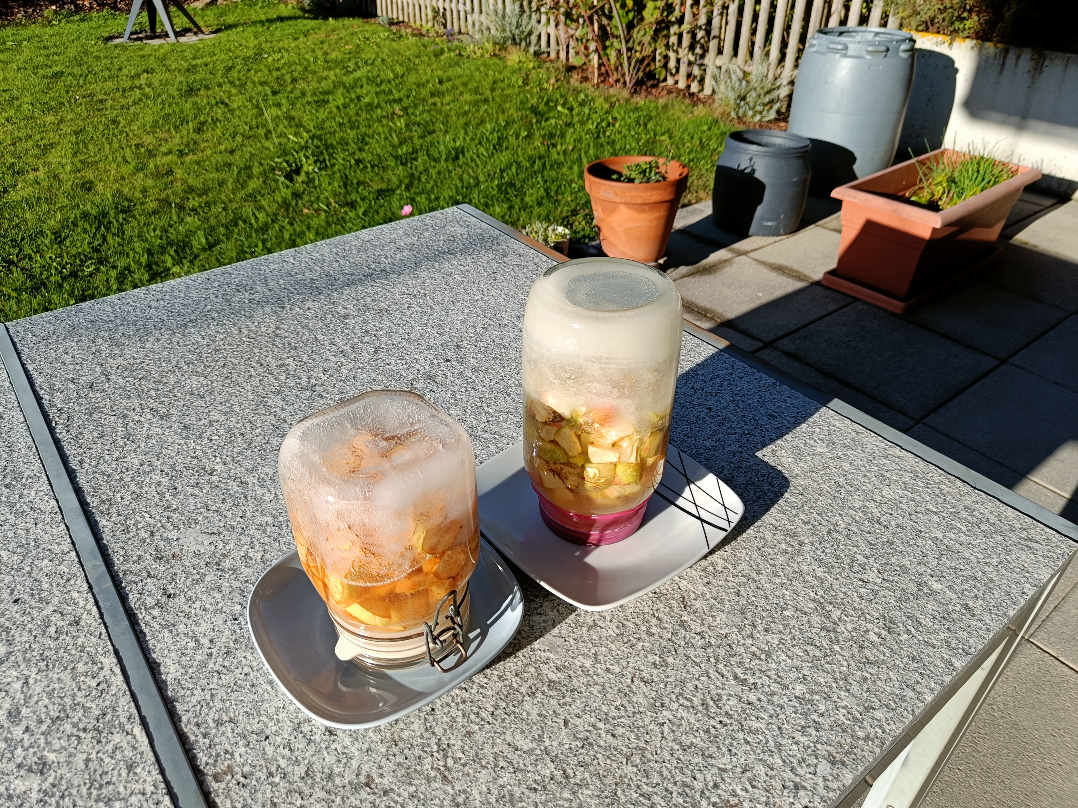 J'ai fait 2 bocaux différents : une fois avec des pommes, une fois avec des coings.