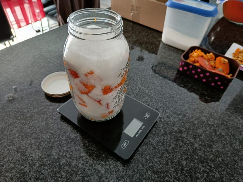 Placer ensuite un poids sur les fruits pour les maintenir sous le sucre liquide et éviter le développement de moisissures. Les 2 semaines suivantes, le koso peut être mélangé tous les 3 à 4 jours seulement.