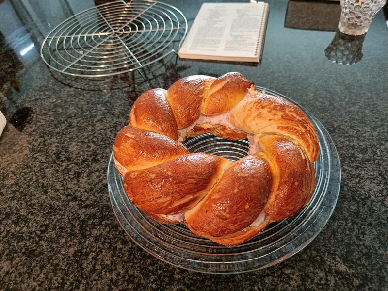 Quoique la prochaine fois je changerai probablement un peu le ratio de corps gras dans la pâte à tresse, c'était un tout petit peu sec.