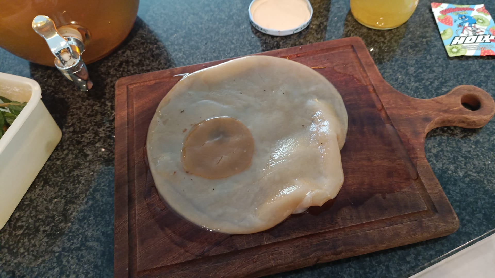 J'en ai découpé un tiers avec un grand couteau bien tranchant et l'ai mis dans le petit bocal à la menthe.
